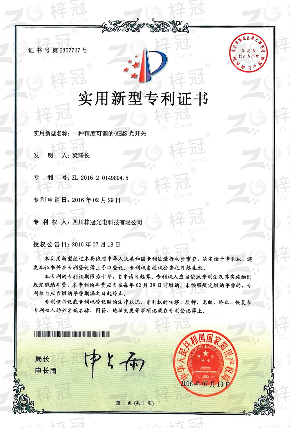 一种精度可调MEMS光开关