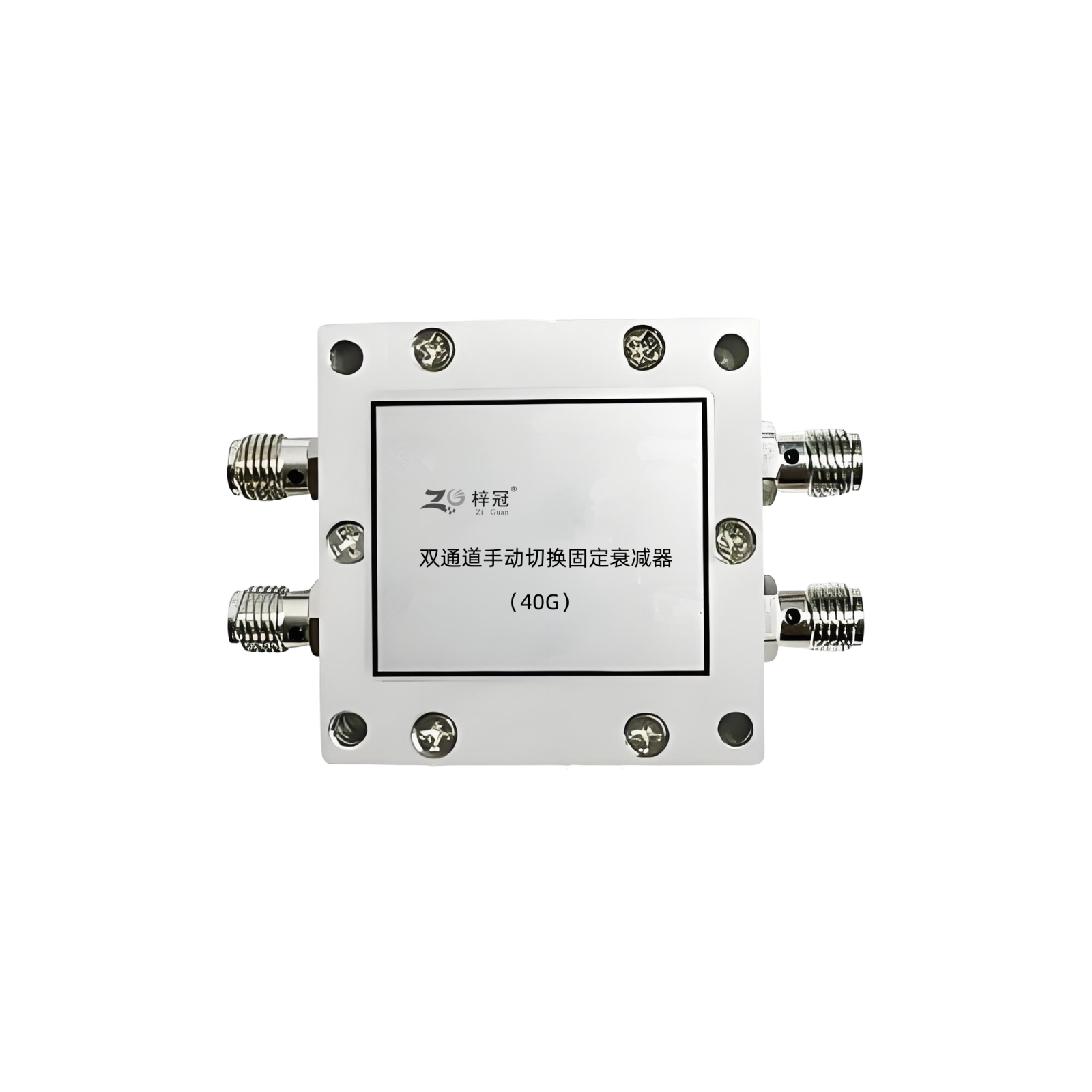 双通道手动切换固定衰减器频率范围:DC-40GHz;衰减精度:±0.5dB;最大输入功率:2W