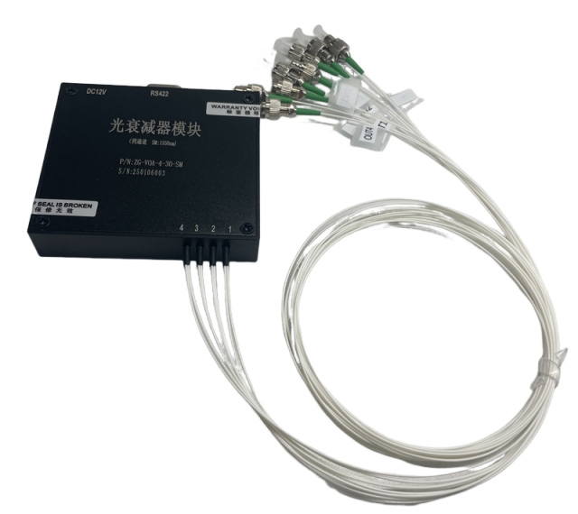 参数 规格 工作电压(V) 8-12V(or 5V) 工作波长(nm) 1260-1650 or 980nm/1064nm 中心波长(nm) 1310/1550/1064 衰减范围(db) 0-60 插入损耗(dB) 0-30 ≤1.2 0-40 ≤2.0 0-60 ≤2.5 衰减稳定度(db) ±0.04(max) 回波损耗(db) > 55 工作温度(℃) - 20~60 储存温度(℃) -40~80 连接器类型 可选 尾纤长度 根据客户要求定制 控制协议 RS232 通道数 可定制 物理尺寸(长X宽X高) 4通道及以下 86X77X18 mm 1-4CH 8通道及以下 100X90X22mm 5-8CH 16通道及以下 170X100X28mm 9-16CH